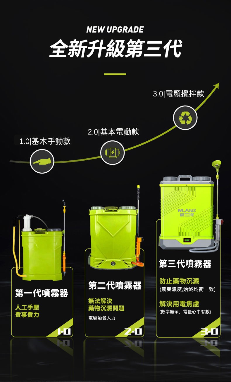 2分鐘前慶祝【WLANZ】全新第三代電動攪拌噴霧 #打藥機 首次成功簽約第二屆雲林國際農業機械暨資材展 原價3690現直降僅需千元就能到手 - 20L攪拌款【36MH】+豪華大禮包--NT$2250