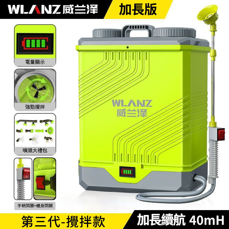 4分鐘前慶祝【WLANZ】全新第三代電動攪拌噴霧 #打藥機 首次成功簽約第二屆雲林國際農業機械暨資材展 原價3690現直降僅需千元就能到手 - 20L攪拌款【40MH】+豪華大禮包--NT$2450