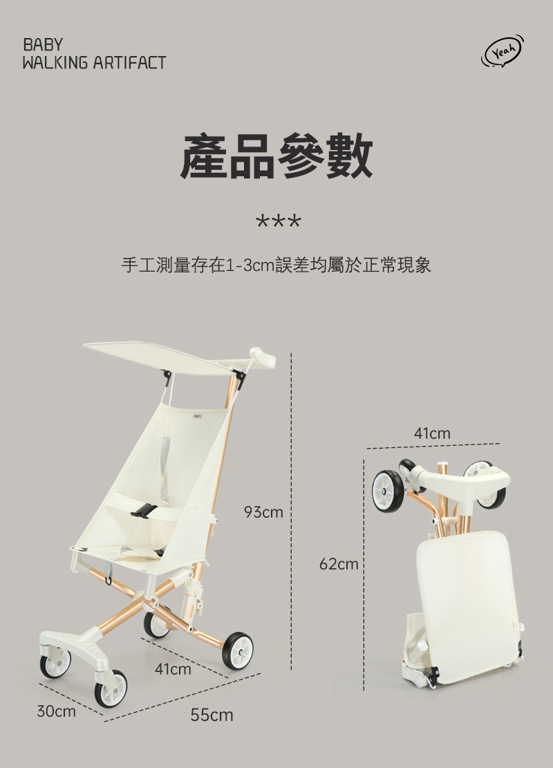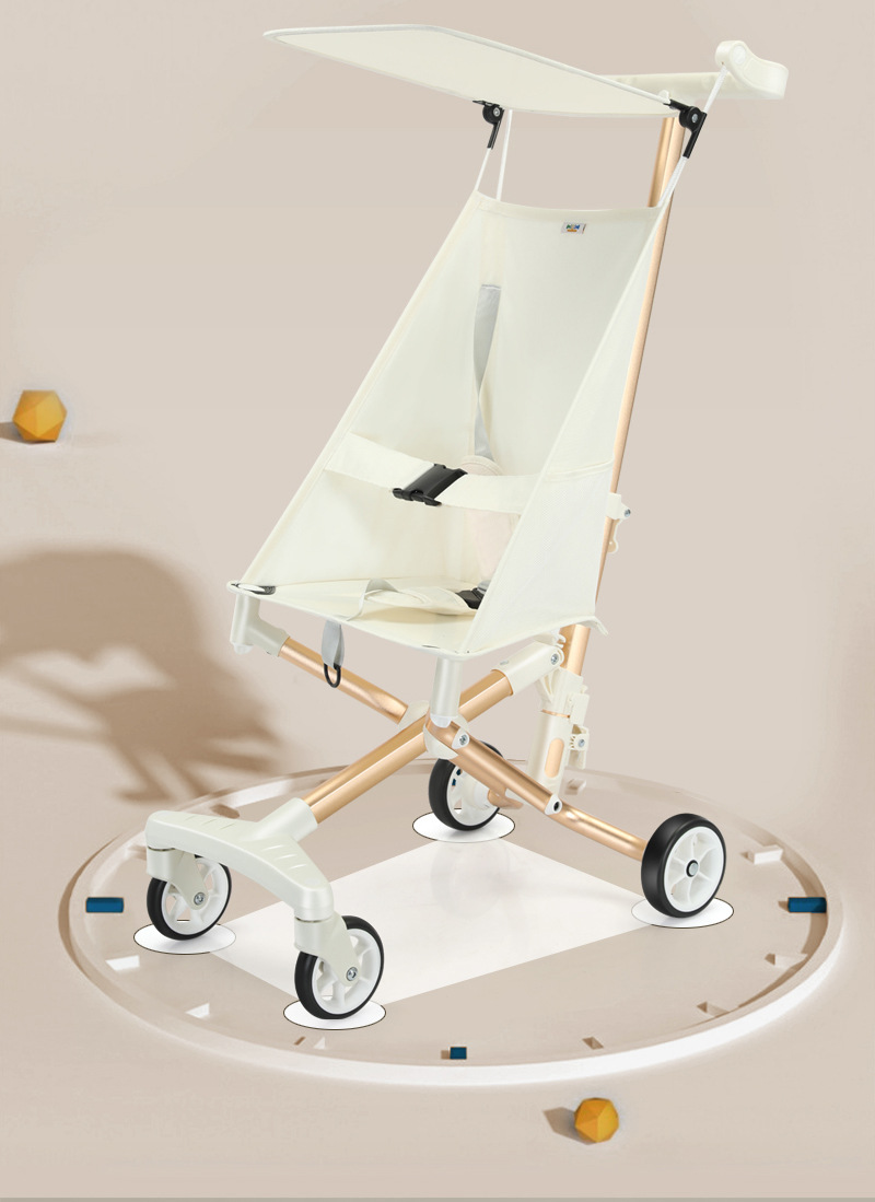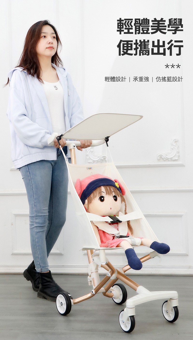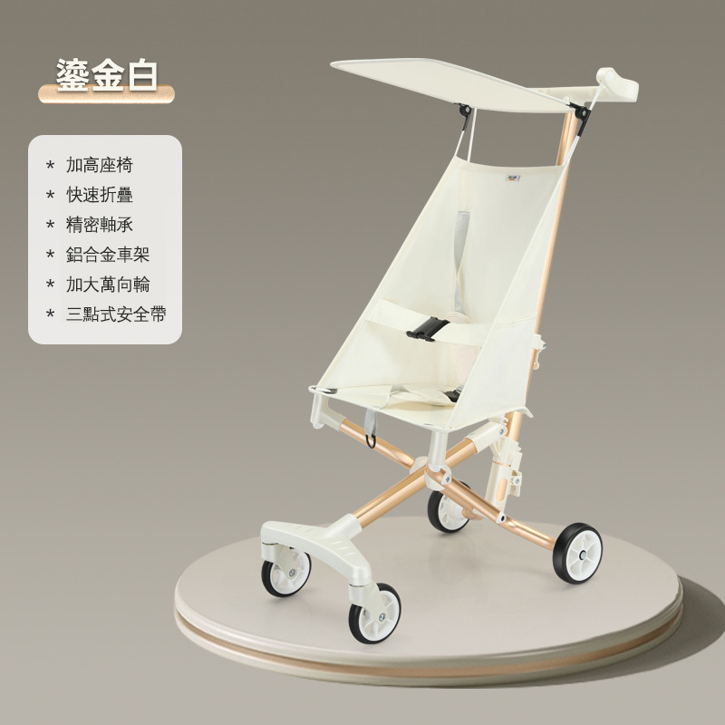 4分鐘前【能上飛機的嬰兒推車】新款鋁合金嬰兒推車 輕便可折疊 出行易攜帶 - 鎏金白輕便折疊嬰兒推車