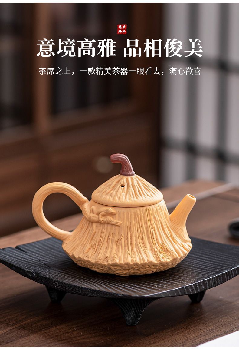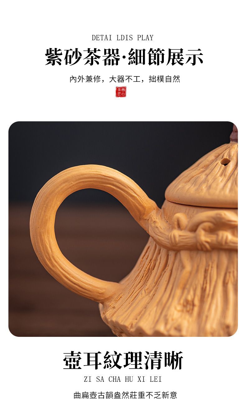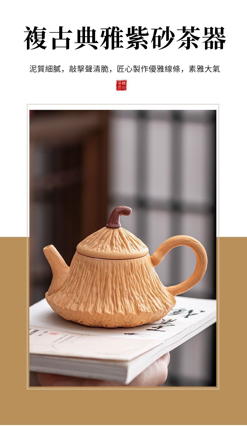 ✩ 絕版收藏!正宗宜興紫砂朱泥長嘴供春壺 ❘ 黃金大容量500cc ❘ 純手工浮雕匠製,泡茶更香