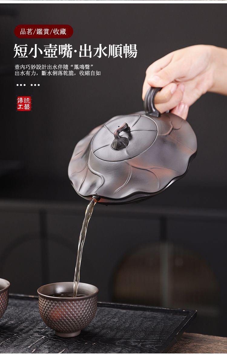 半小時前正宗原礦紫陶浮雕富甲天下荷韻 • 荷花壺┃350cc大容量紫砂鳳鳴壺 純手工大師范明偉匠心之作,泡茶更醇香! - 紫陶富甲天下荷葉鳳鳴壺