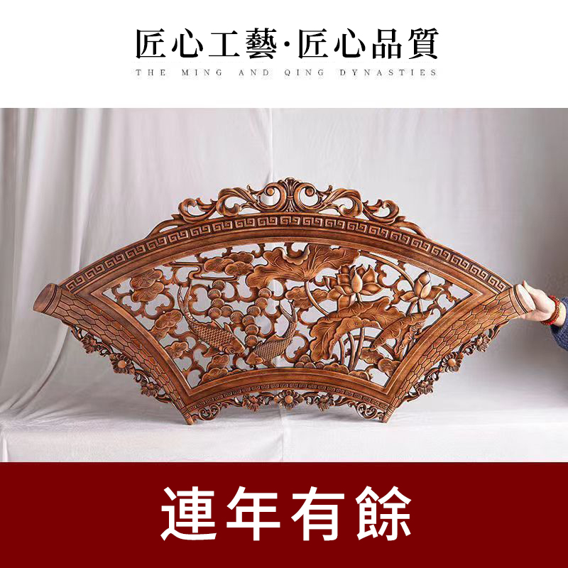 5分鐘前年到!福到! [東陽木雕] 傳承千年木上巧思——天然香樟木雕刻掛件 久放升值 家中旺!年年順! - 典藏款-扇形80*40cm---NT$2480