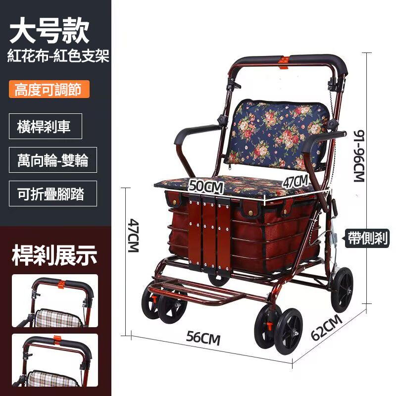 5分鐘前可折疊多功能老人代步購物車 超強承重 大容量收納 各種場景都適用,長輩們購物、散步更輕鬆! - 【大號款】老人代步購物車+帶踏板 NT$4050
